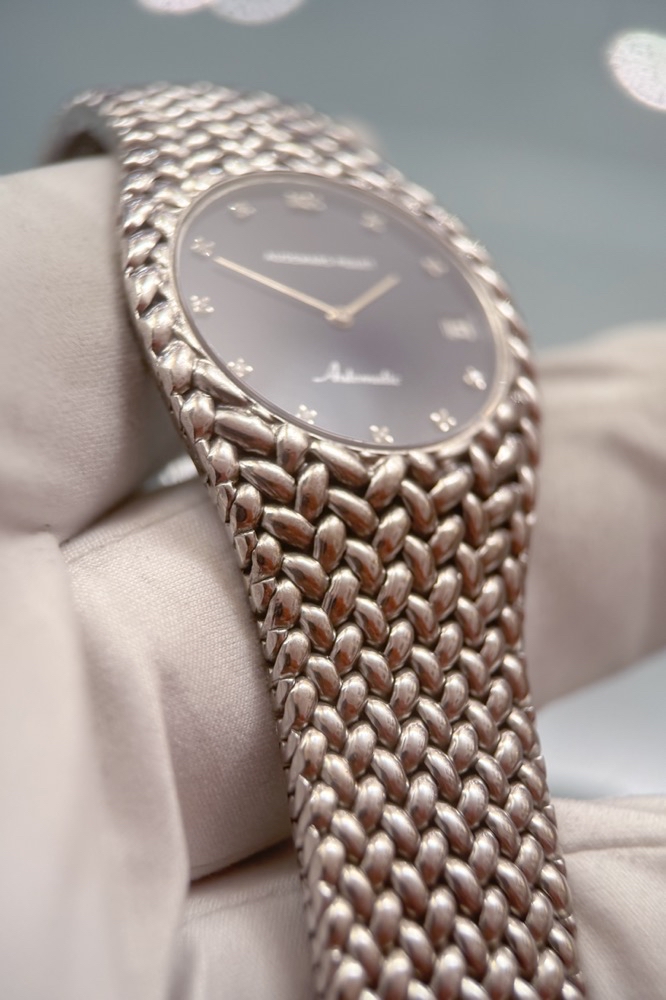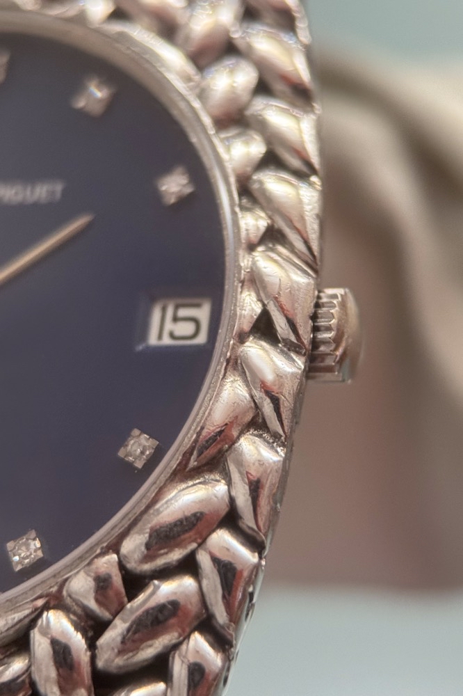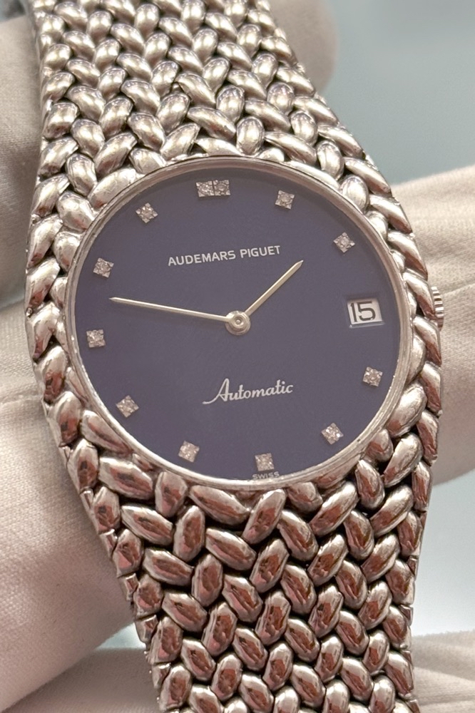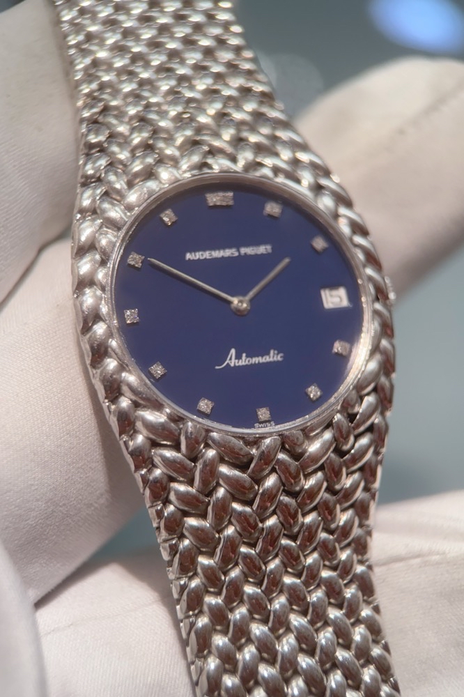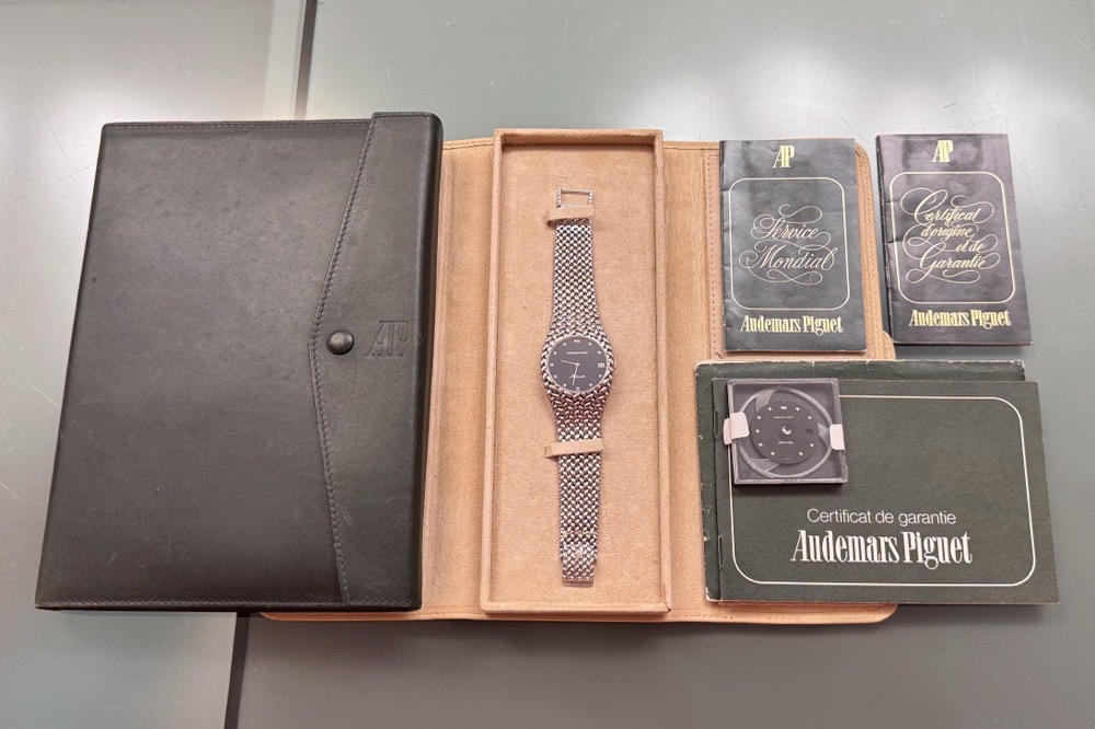 Besonders hervorzuheben ist das originale blaue Tapisserie-Zifferblatt, dessen Farbspiel je nach Licht einzigartig zur Geltung kommt. Ergänzt wird das Angebot durch ein zweites originales AP-Zifferblatt, was diese Uhr zu einem echten Sammlertraum macht.