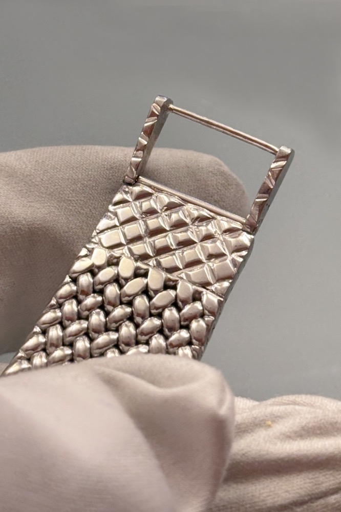 Zum Verkauf steht eine äußerst seltene Audemars Piguet Royal Oak „Cobra“ Ref. 5403BC in 18K Weißgold. Diese frühe Royal Oak begeistert durch ihr flaches Gehäuse und das charakteristische Design von Gérald Genta – eine Ikone der Uhrmacherkunst und ein Highlight jeder Sammlung.