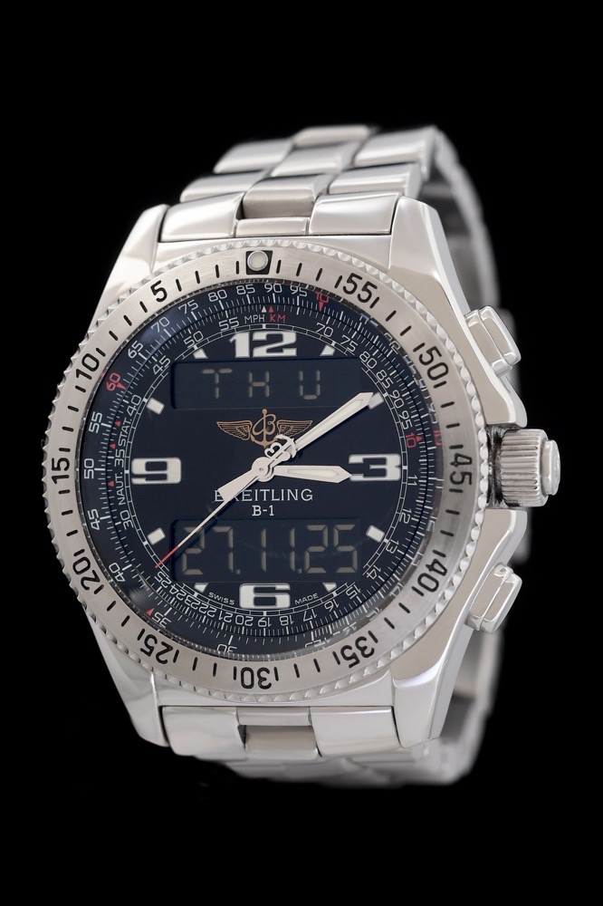 Chronograph, Datum, Kleine Sekunde, Leuchtzeiger, Leuchtziffer, OriginalZustand/Originalteile, Schnellschaltung, Verschraubte Krone