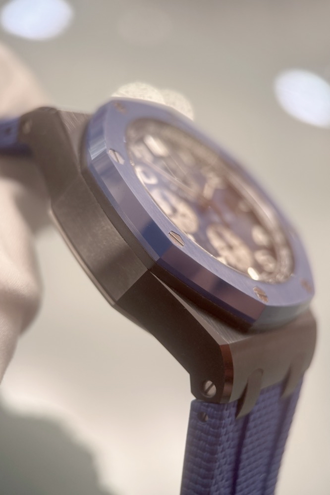 Das leuchtend blaue Méga Tapisserie-Zifferblatt verfügt über drei schwarze Hilfszifferblätter, ein Datumsfenster bei 3 Uhr sowie lumineszierende Stundenmarkierungen und Zeiger aus Weißgold für optimale Ablesbarkeit. Angetrieben vom Automatikwerk Kaliber 3126/3840 bietet die Uhr Präzision und Funktionalität, inklusive einer Gangreserve von 50 Stunden. Zusammen mit dem komfortablen blauen Kautschukarmband vereint diese Uhr sportliche Eleganz und technische Leistungsfähigkeit und ist damit eine herausragende Wahl für Sammler, die einen vielseitigen und attraktiven Chronographen suchen.