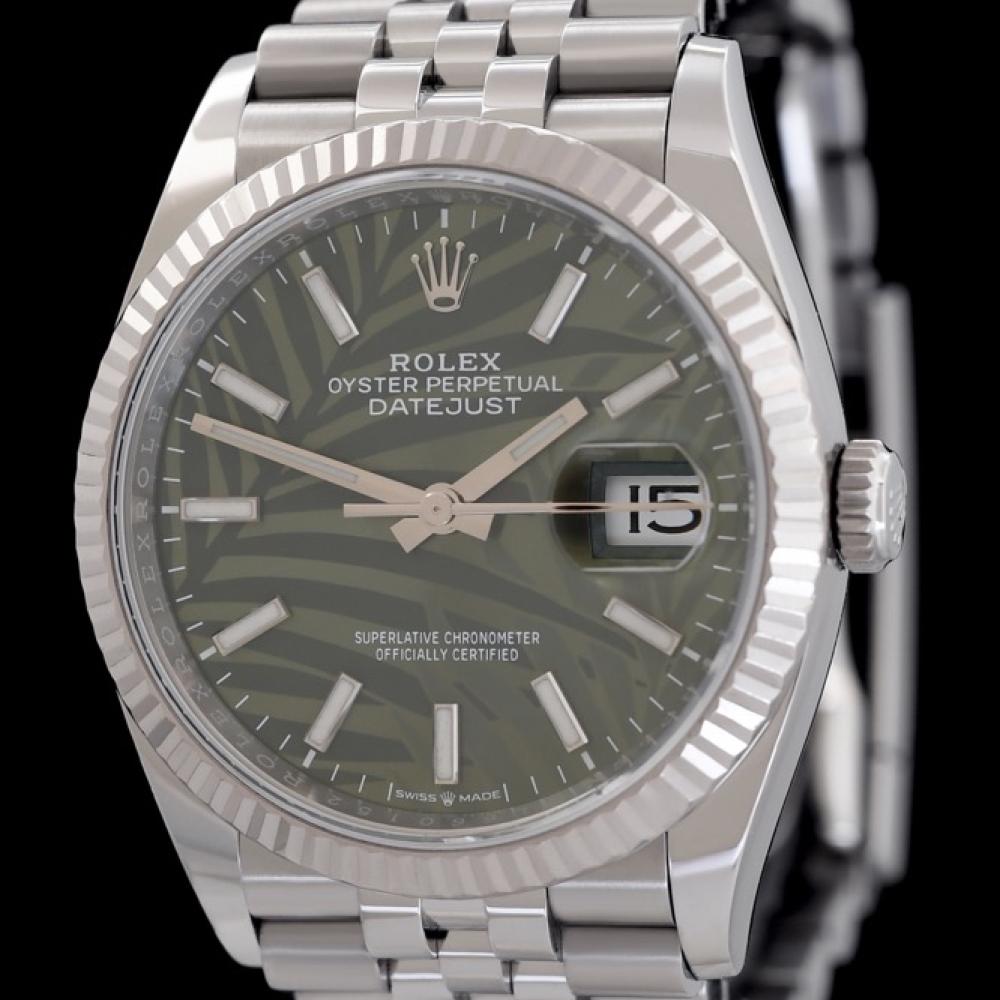 Rolex Datejust 36 Green Palm Motiv Dial - 126234 - Edelstahl/Weissgold - Box/Papiere - LC100 - Jahr: 08/2021 - Jubilee - Top!