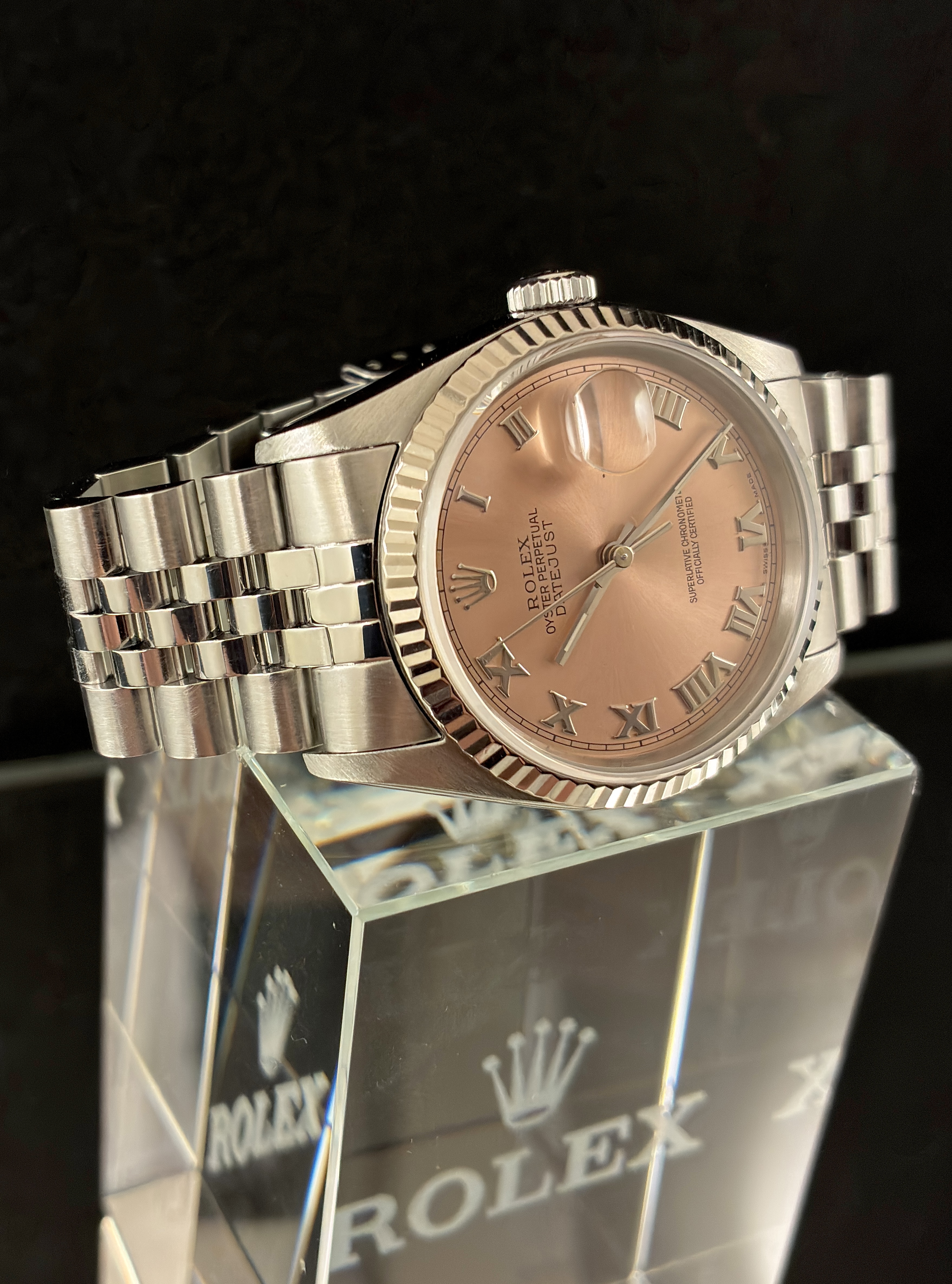 We are pleased to present you this very nice neo-vintage Datejust 36 Ref. 16234 in stainless steel with white gold fluted bezel.