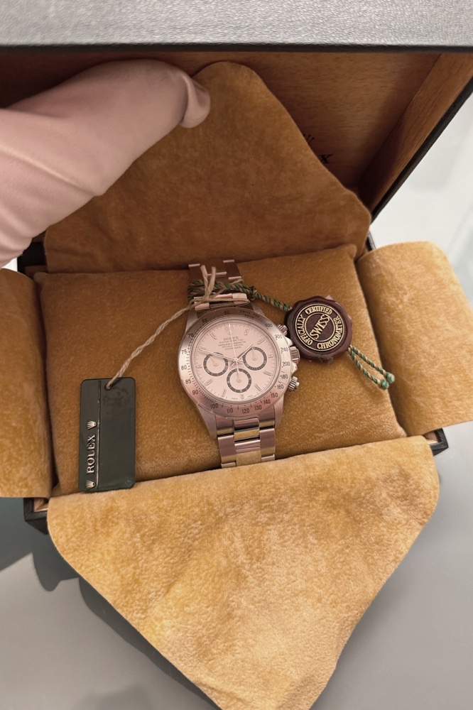 Bitte schauen Sie sich die Bilder an. Diese Uhr kann jederzeit in unserem Store zwischen der „Fressgass`“/Bockenheimer Strasse und der