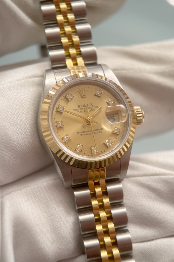 Please have a look on the photos. This watch can be inspected anytime in our store, which is located between „Fressgass´“/Große Bockenheimer Strasse and Goethestrasse. An advance notification is not mandatory.