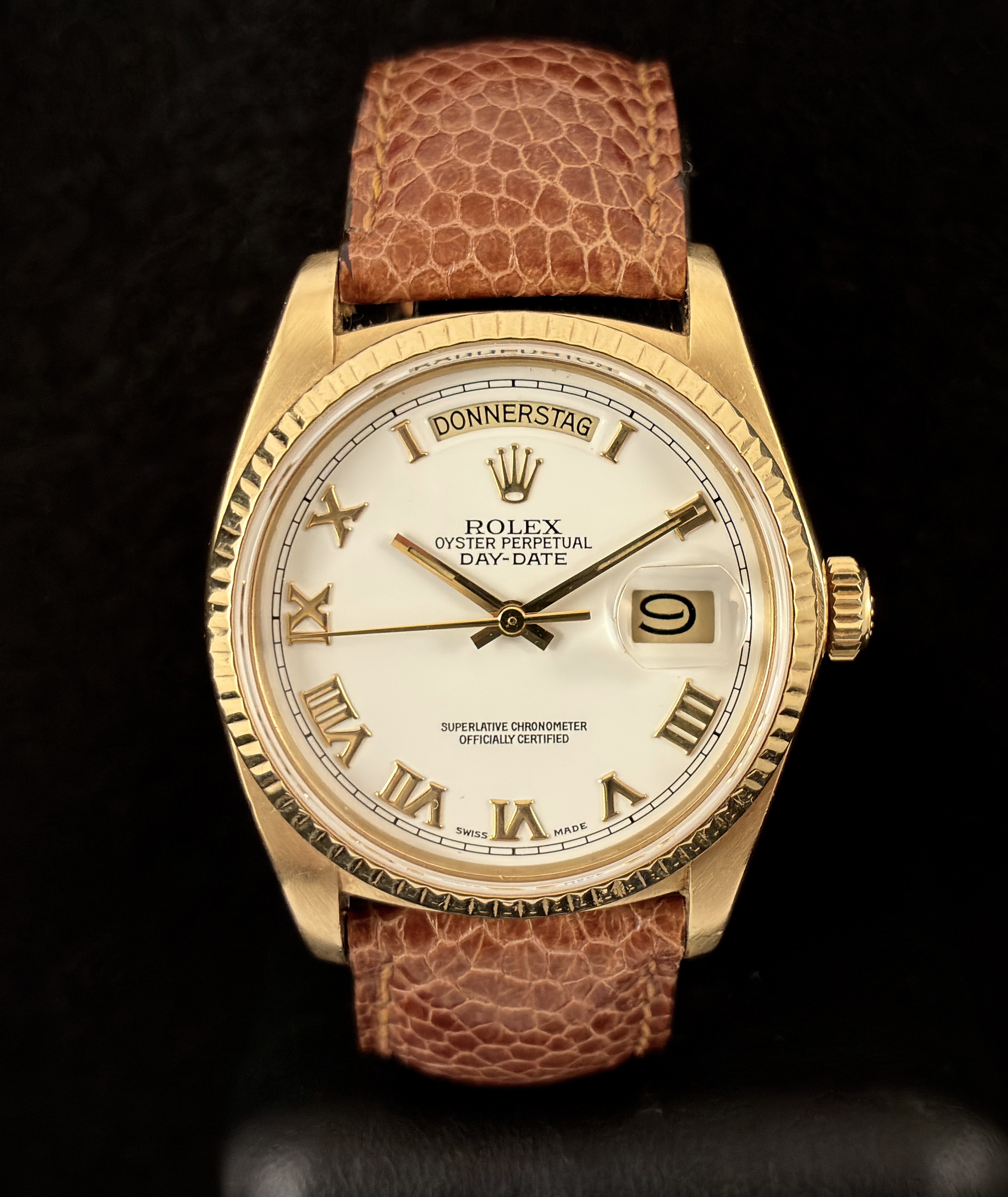 Please have a look on the photos. This watch can be inspected anytime in our store, which is located between „Fressgass´“/Große Bockenheimer Strasse and Goethestrasse. An advance notification is not mandatory.