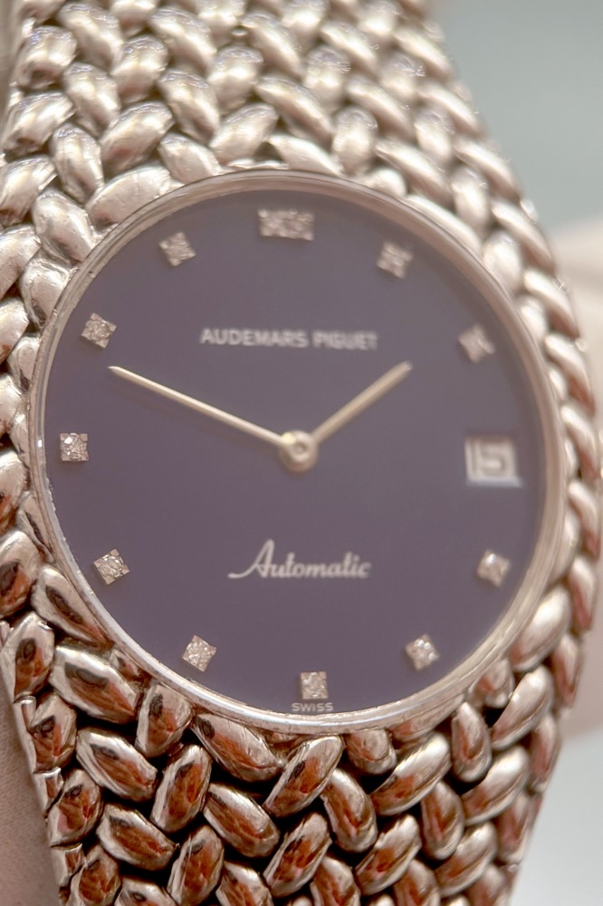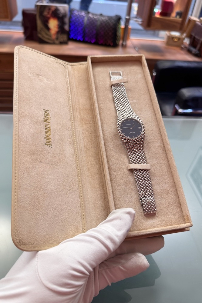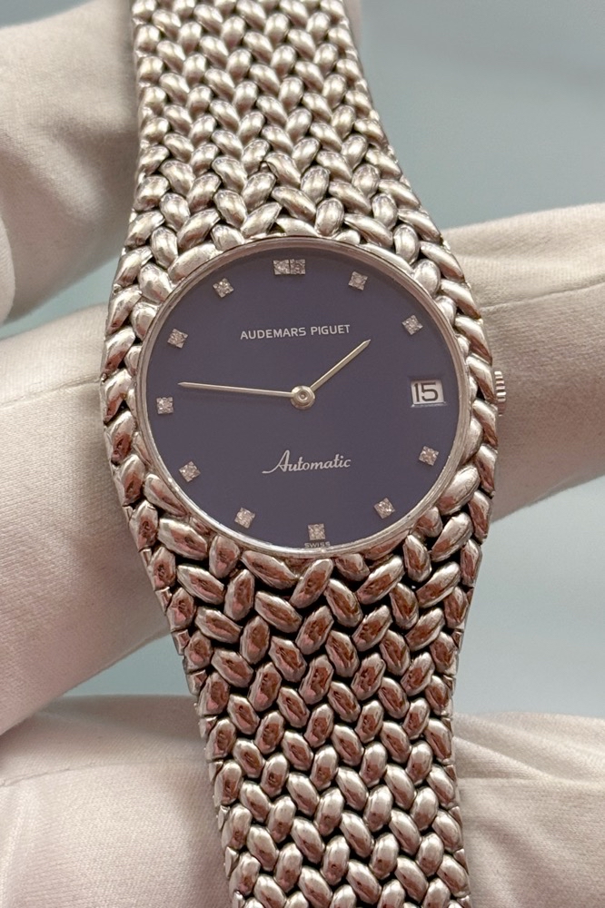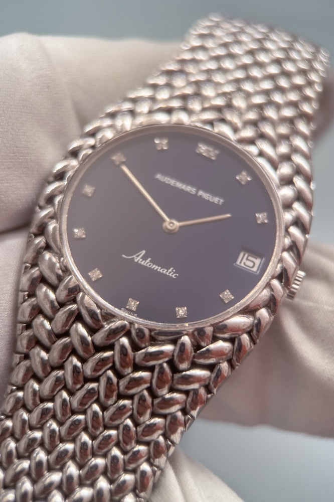 Besonders hervorzuheben ist das originale blaue Tapisserie-Zifferblatt, dessen Farbspiel je nach Licht einzigartig zur Geltung kommt. Ergänzt wird das Angebot durch ein zweites originales AP-Zifferblatt, was diese Uhr zu einem echten Sammlertraum macht.