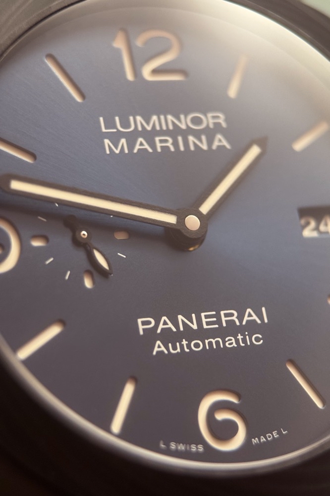 Sehr schöne Panerai Luminor Marina Carbontech Blue Notte PAM01664 aus Carbon.