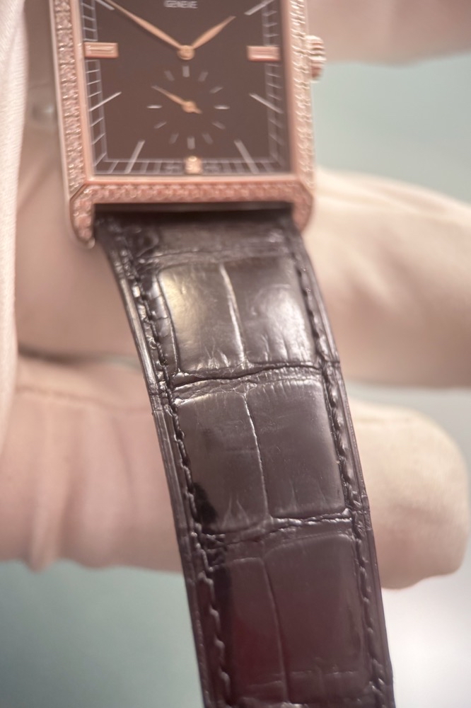 Die Patek Philippe Gondolo brilliert nicht nur mit eckigen Gehäuseformen, sondern überzeugt weltweit dank ihrer raffinierten Schlichtheit trotz Edelsteinbesatz. Inspiriert vom bewährten Art Déco Design, liegt der hohe Wiedererkennungswert der Uhr in der gelungenen Kombination aus klarer Geometrie sowie der graziösen Verarbeitung des Zifferblattes.