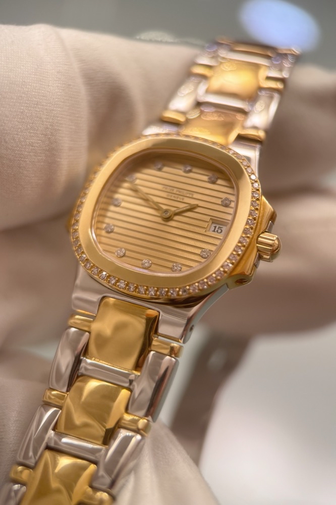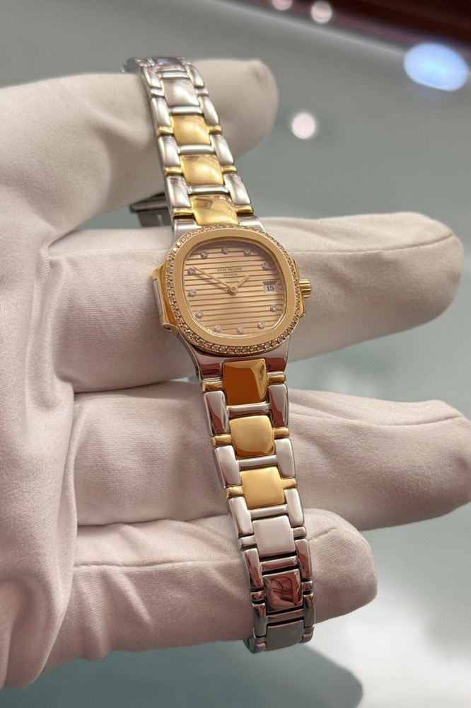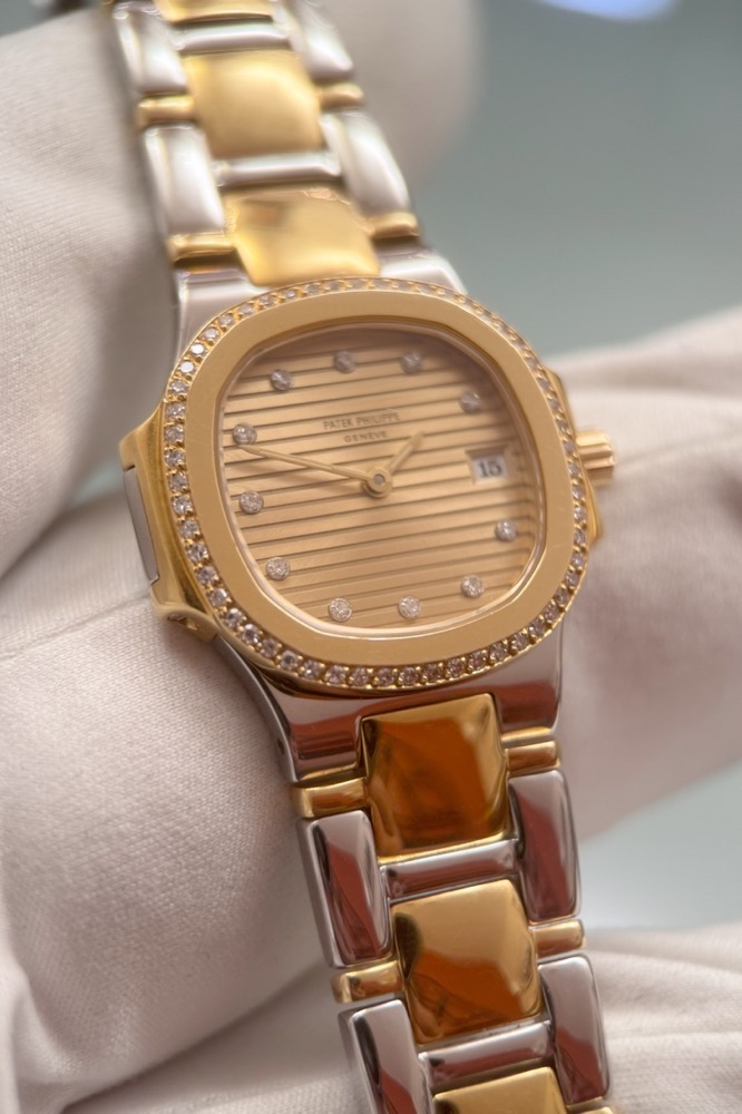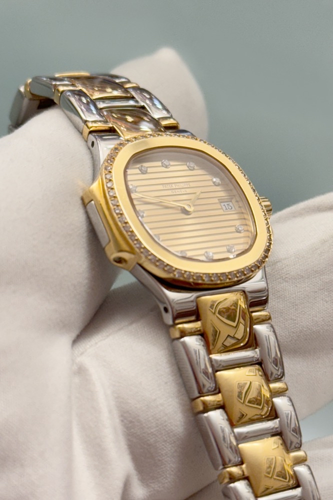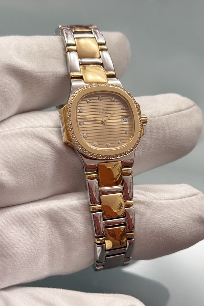 Patek Philippe Nautilus Lady 4700 - Originalbesatz - Edelstahl/Gelbgold - 90er Jahre - Champagner Dia Dial - Quarz - Top!