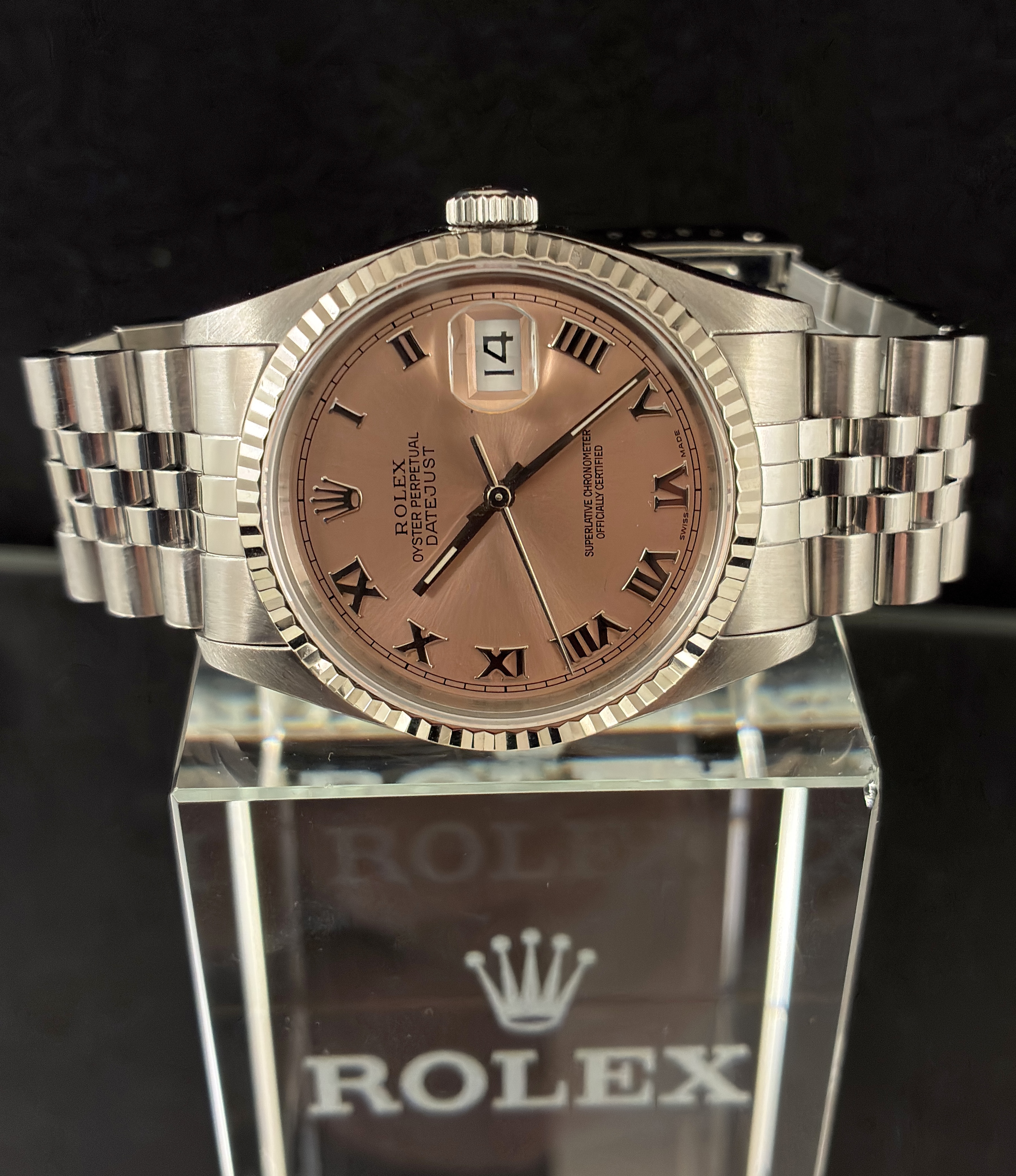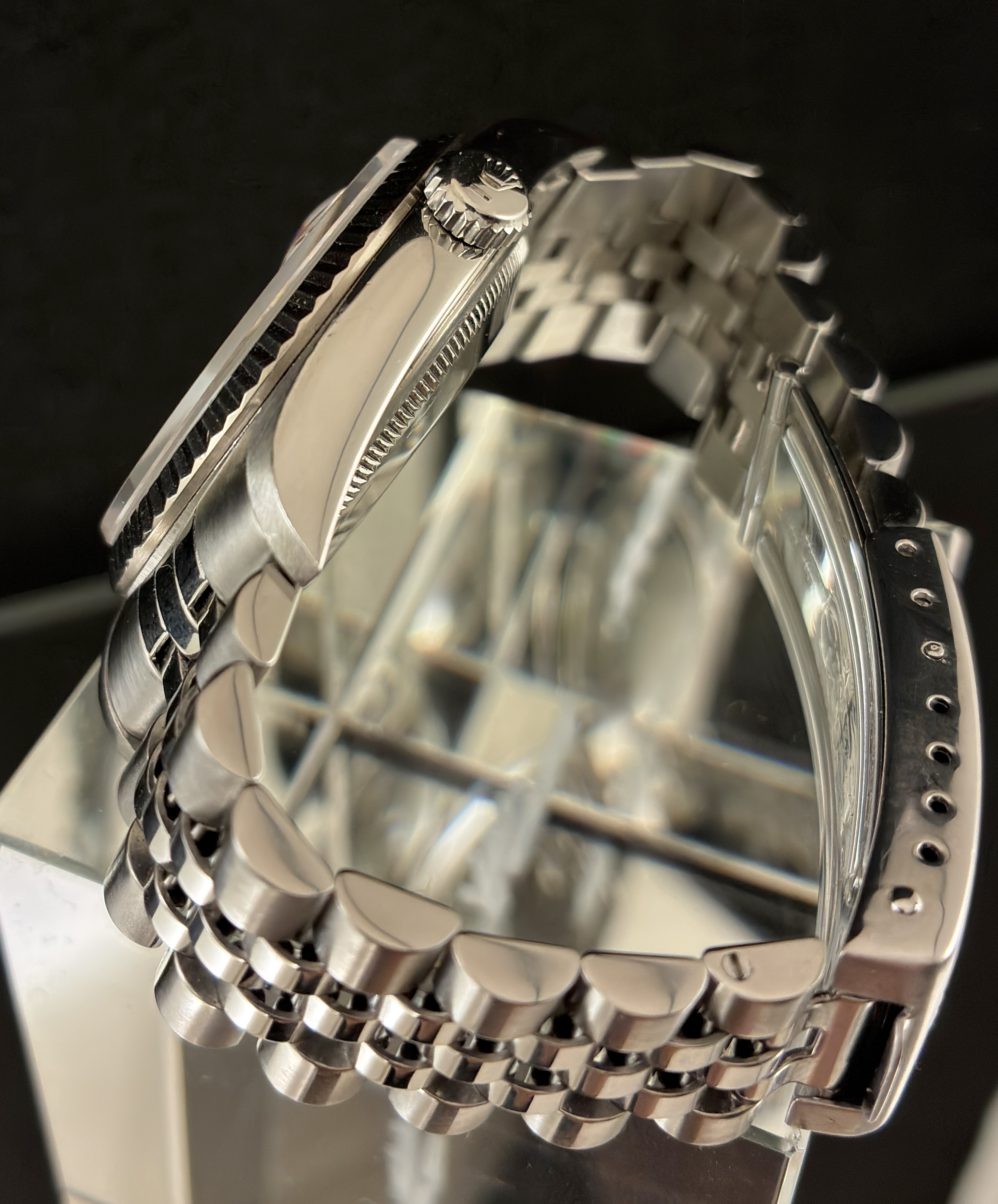 Bitte schauen Sie sich die Bilder an. Diese Uhr kann jederzeit in unserem Store zwischen der „Fressgass`“/Bockenheimer Strasse und der