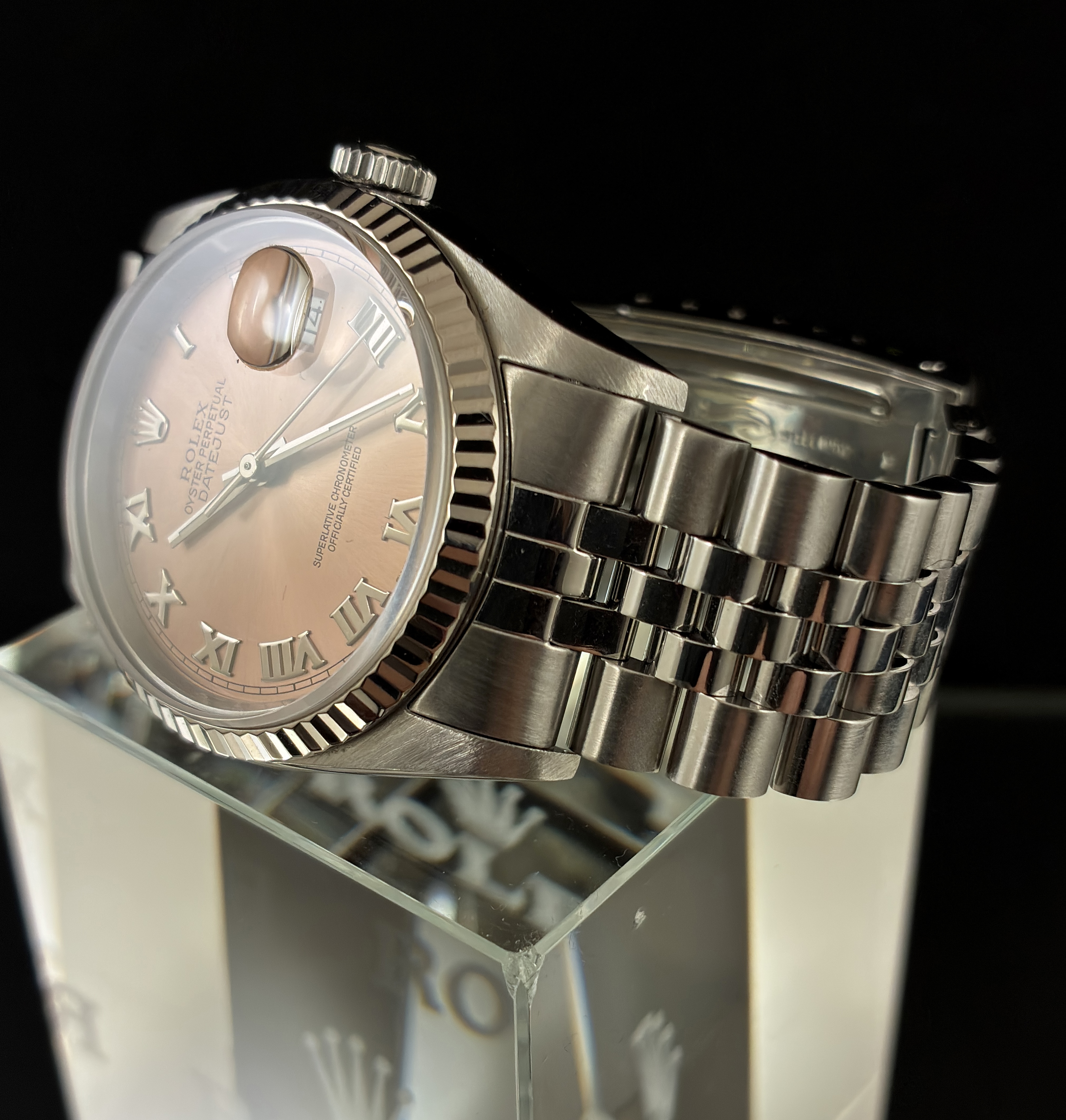 Please have a look on the photos. This watch can be inspected anytime in our store, which is located between „Fressgass´“/Große Bockenheimer Strasse and Goethestrasse. An advance notification is not mandatory.