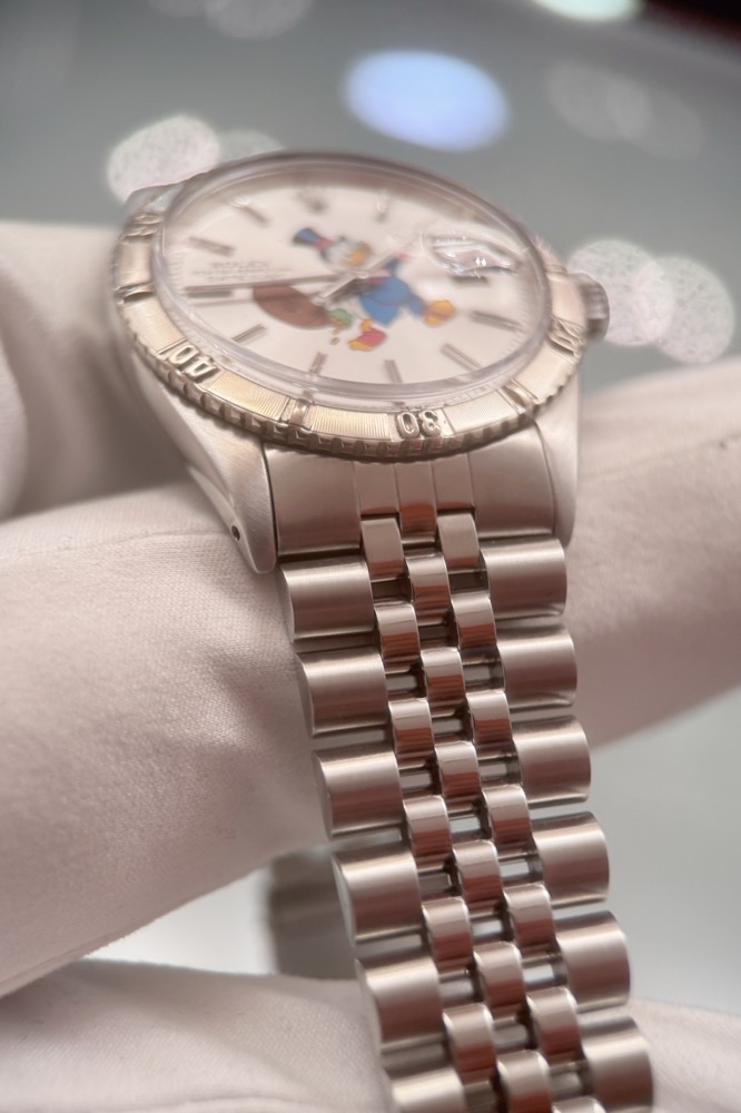 Please have a look on the photos. This watch can be inspected anytime in our store, which is located between „Fressgass´“/Große Bockenheimer Strasse and Goethestrasse. An advance notification is not mandatory.