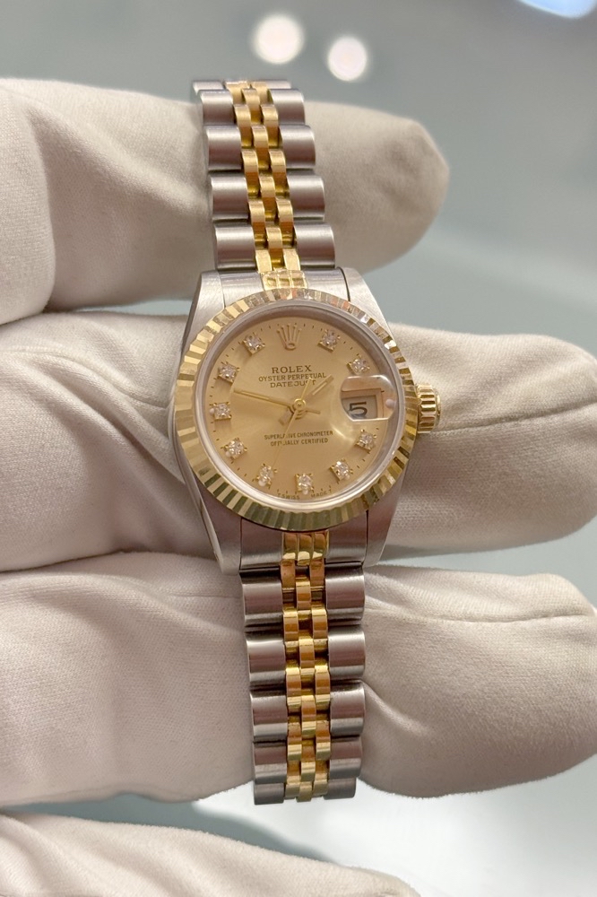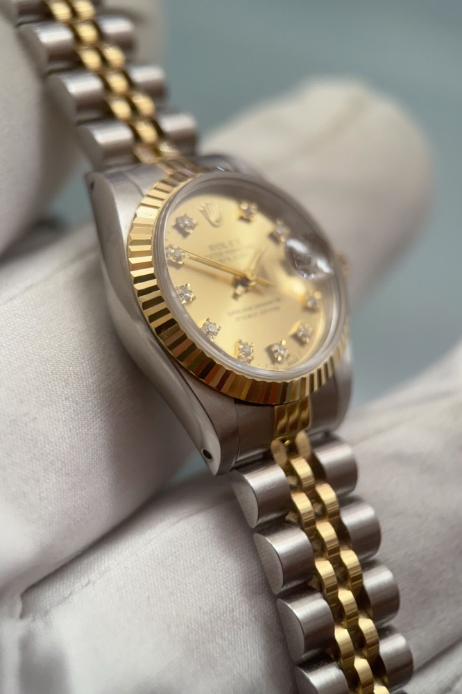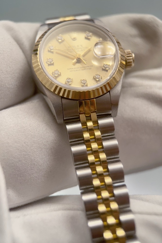 Please have a look on the photos. This watch can be inspected anytime in our store, which is located between „Fressgass´“/Große Bockenheimer Strasse and Goethestrasse. An advance notification is not mandatory.