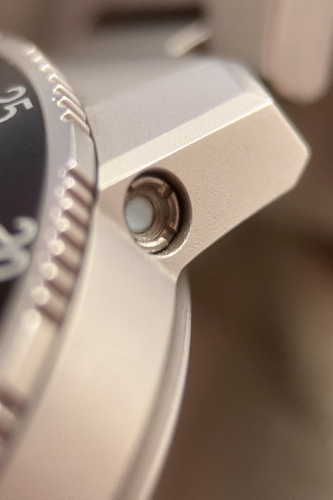 Auffallend ist weiterhin die Anordnung der Krone auf der linken Seite des perlgestrahlten Gehäuses. Diese Anordnung gewährleistet mehr Bewegungsfreiheit und verschafft der Krone eine besonders geschützte Position. Ausgestattet ist diese instrumentelle Uhr mit der Ar-Trockenhaltetechnik für eine erhöhte Funktions- und Beschlagsicherheit, einem Magnetfeldschutz bis 100mT (=80.000 A/m) und der Temperaturresistenztechnologie, die für Funktionssicherheit im Temperaturbereich von –45°C bis + 80°C sorgt.